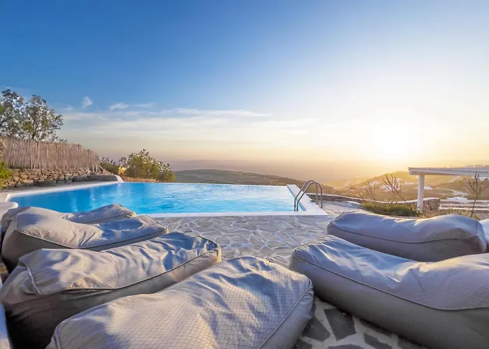 Lights Of Mykonos Star Light Villa de 300 m^2 est situé à 4 km du Musée de l'agriculture et à proximité de la Mer Égée. La villa comprend un balcon, un coffre personnel et un espace de repas.